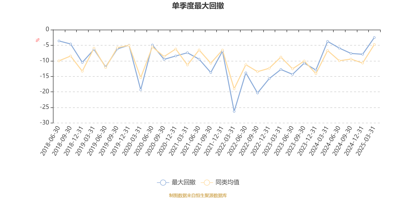 通过所选区间该基金净值增长率分位图,可以观察该基金与同类基金业绩比较情况。图为坐标原点到区间内某时点的净值增长率在同类基金中的分位数。