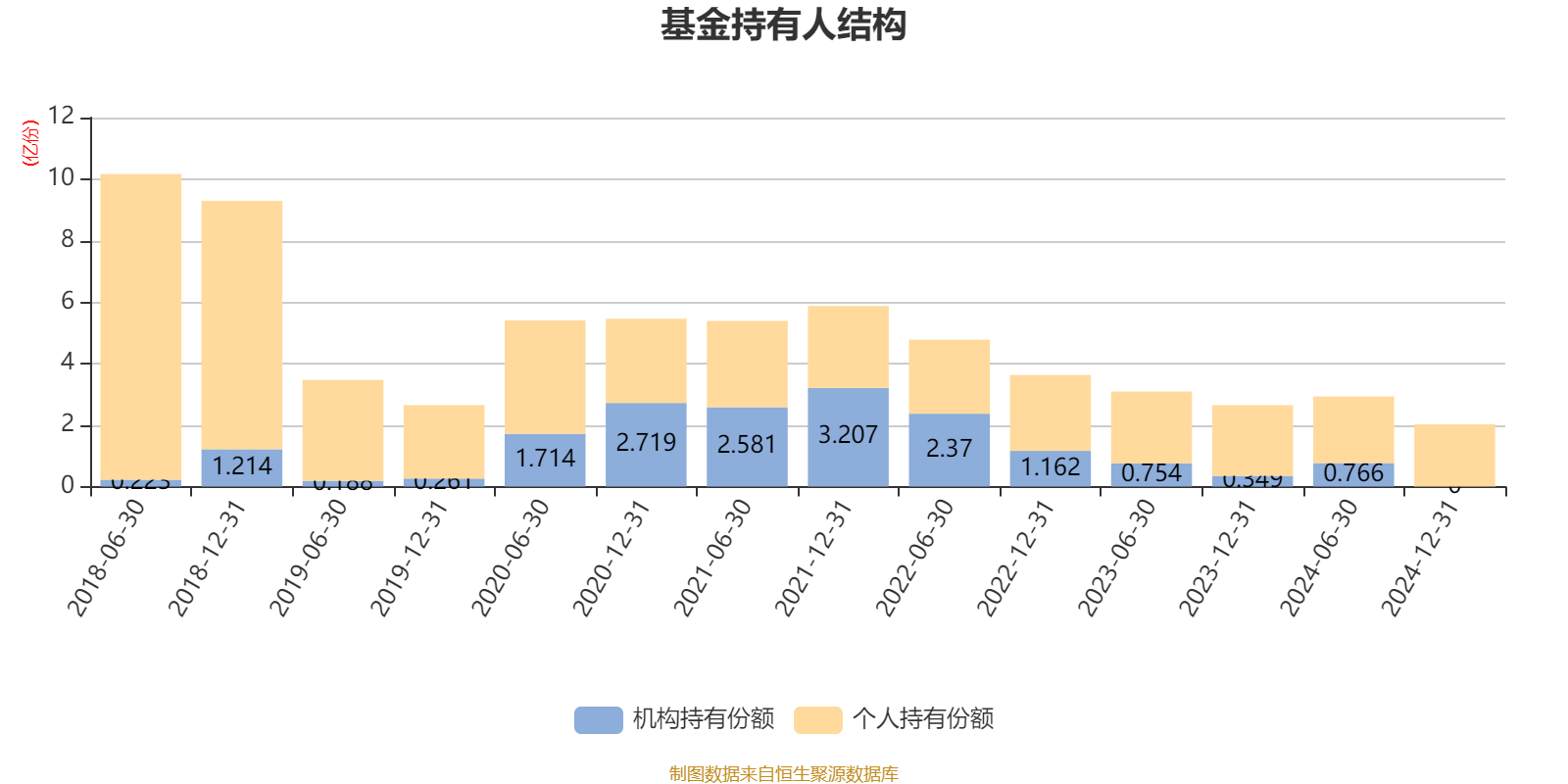 截至2024年12月31日,基金持有人共计1.31万户,合计持有2.03亿份。其中管理人员工持有28.24万份,占比0.14%,机构持有份额占比0.00%,个人投资者占比100.00%。